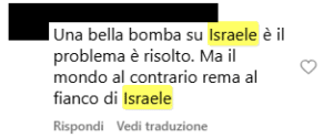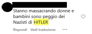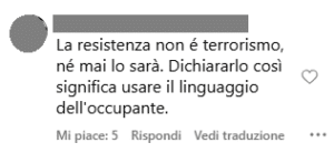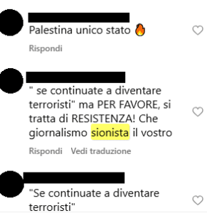 “La resistenza non è terrorismo e mai lo sarà” “Si tende a rifare ciò che si ha subito” “Sono peggio dei nazisti di HITLER” “Che giornalismo sionista il vostro” “Una bella bomba su Israele e il problema è risolto”