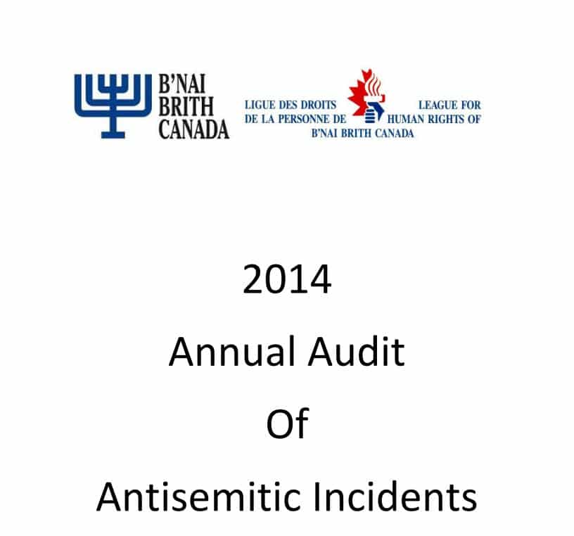 Il 2014 ha visto il più alto numero di episodi di antisemitismo mai registrati dal “B’nai Brith” e dalla “League for Human Rights”.