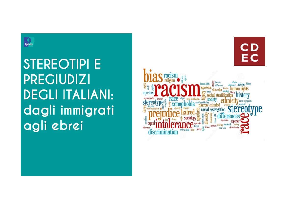 La Fondazione Centro di Documentazione Ebraica Contemporanea e Ipsos hanno realizzato un’indagine volta ad indagare quali siano oggi le opinioni ed i sentimenti degli Italiani nei confronti degli ebrei: apertura/chiusura, possibili stereotipi diffusi, fino ad arrivare al misurare la presenza o meno di un vero e proprio antisemitismo.