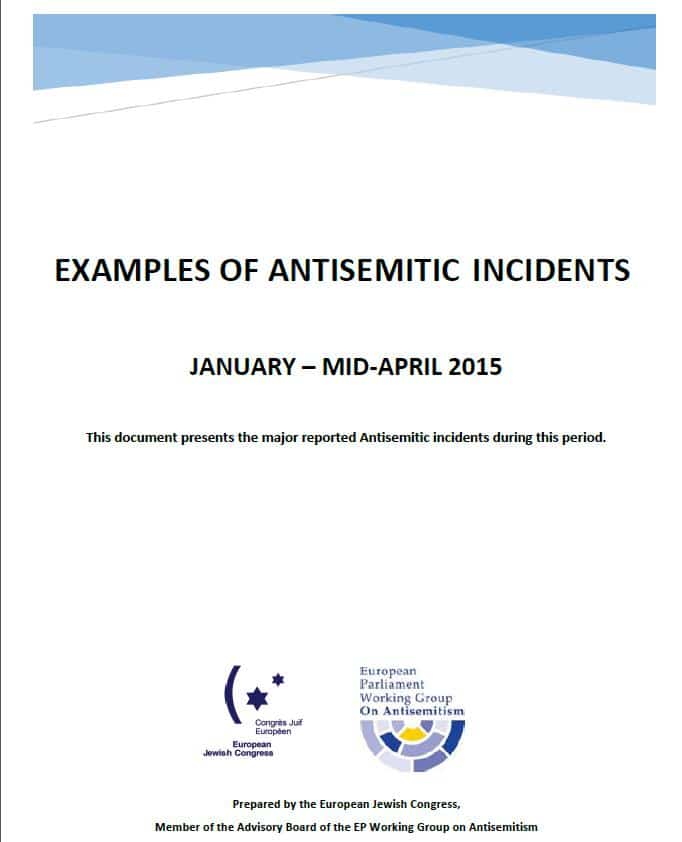 Lo“European Parliament Working Group on Antisemitism” del Parlamento Europeo ha diffuso il suo nuovo report dedicato agli episodi di antisemitismo nella UE nel periodo gennaio 2015 – prima metà aprile 2015 .