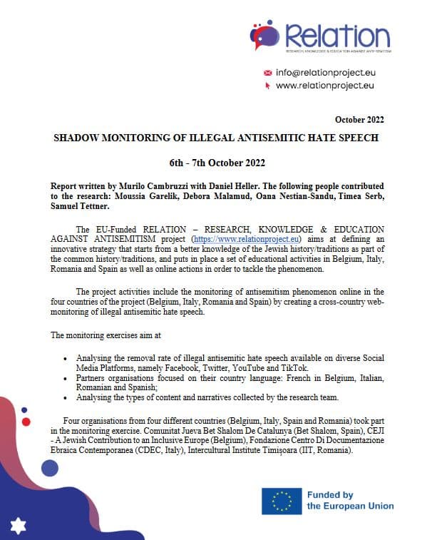 Report: SHADOW MONITORING OF ILLEGAL ANTISEMITIC HATE SPEECH