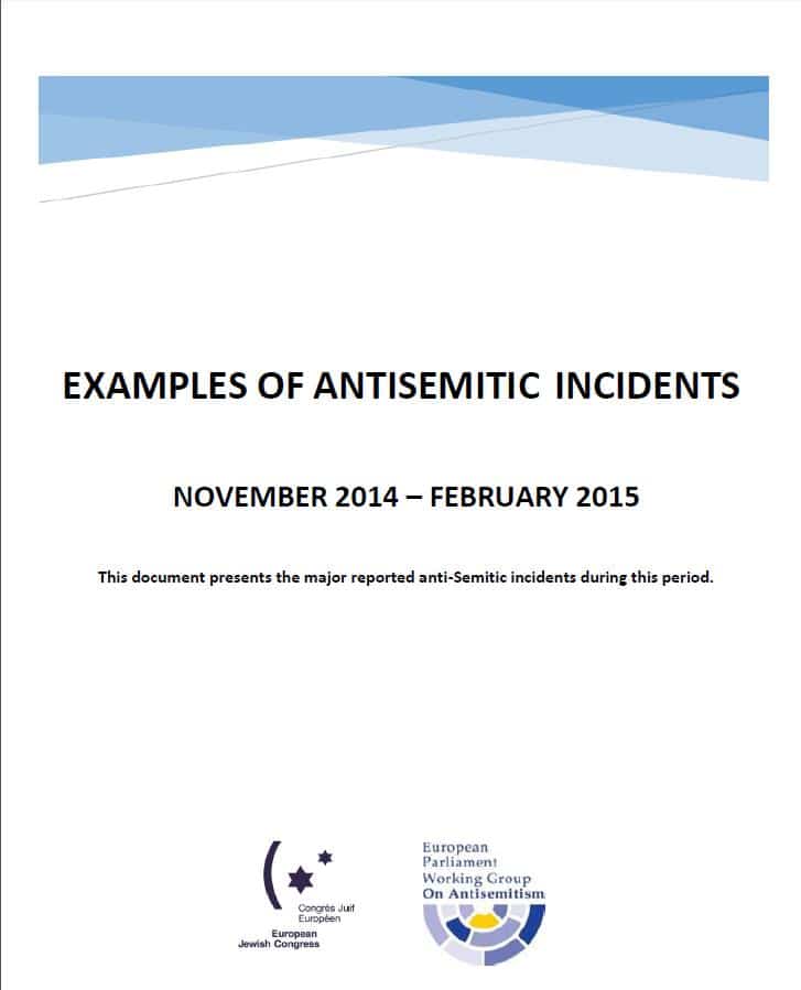 “Incidents report” dedicati agli episodi di antisemitismo in Europa, dal maggio 2014 al febbraio 2015