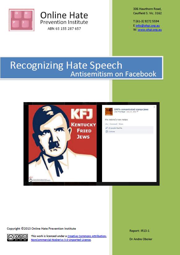 Recognizing Hate Speech Antisemitism on Facebook è il nuovo studio di Andre Oboler, CEO dell’ Online Hate Prevention Institute and co-presidente dell’ Online Antisemitism Working Group of the Global Forum to Combat Antisemitism, dedicato all’antisemitismo nel Web. Il report è incentrato sulla diffusione dei discorsi antisemitici attraverso Facebook, e sulla difficoltà a rimuovere e riconoscere i contenuti antisemiti presenti all’interno della pages del principale Social network. Andre Oboler mostra attraverso molteplici esempi come Facebook non sia in grado di comprendere cosa sia realmente l’antisemitismo, anche quando si manifesta in modo palese e virulento.
