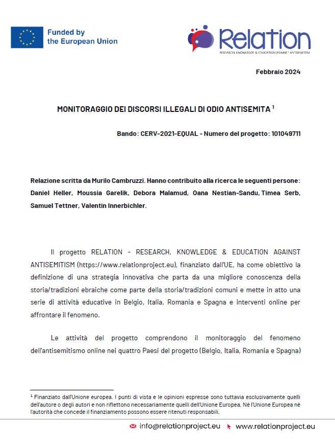 RELATION: Monitoraggio dei discorsi illegali di odio antisemita