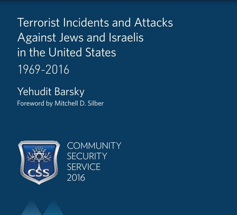 Questo report curato dal Community Security Service (CSS) registra gli attacchi violenti contro ebrei ed israeliani negli Stati Uniti dal 1969 al 2016. Il report non registra tutti gli atti di antisemitismo ma solo quelli più violenti. Dei 1.354 atti criminali di matrice religiosa rilevati dall’FBI nel 2015, ben 695 (il 51.3% del totale) hanno avuto come obiettivo gli ebrei. Secondo l’“FBI hate crimes statistics report” gli ebrei sono il gruppo religioso maggiormente preso di mira negli Stati Uniti, e ciò costituisce un trend ormai consolidato da anni.