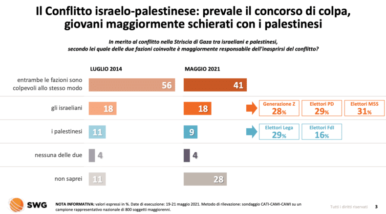 Nuova indagine dell’istituto di ricerca Swg sulla percezione degli italiani rispetto al conflitto tra il movimento terroristico Hamas e lo Stato di Israele