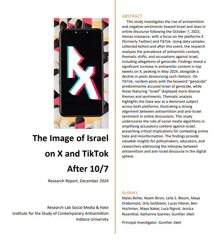 Ultimo rapporto ISCA 2024: L'immagine di Israele post 7 ottobre su TikTok e X