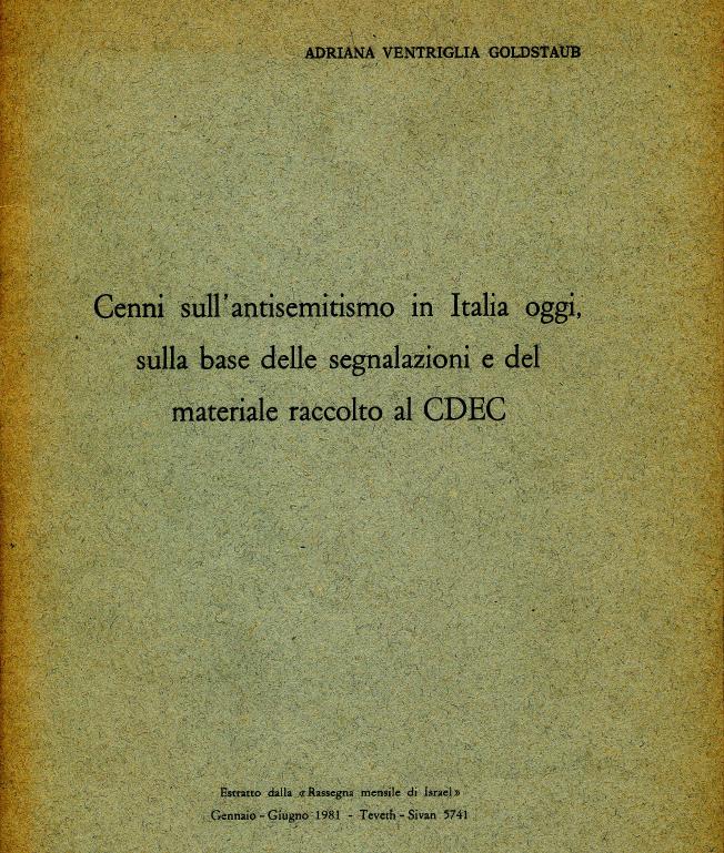 Cennisuantisemitismo-1981Relazione quadriennale (1986 – 1990) di Adriana Goldstaub sull’antisemitismo in Italia per il I Congresso dell'Unione delle Comunità Ebraiche Italiane (ma XIII dell'ex Unione delle Comunità Israelitiche Italiane)