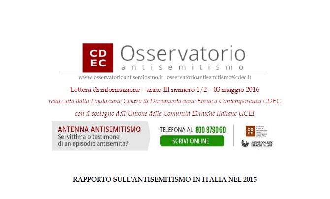 RAPPORTO SULL’ANTISEMITISMO IN ITALIA NEL 2015