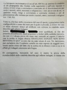 Milano il pm chiede l’archiviazione per il cartello ‘sionisti non benvenuti’