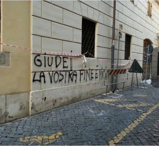 «Anna Frank cantastorie», diceva una lugubre scritta nera su fondo bianco, sormontata da una svastica, all’Appio. Numerosi i negozi gestiti da ebrei imbrattati con insulti, sulle saracinesche o sulle vetrine. «Giudei, la vostra fine è vicina», era lo slogan delirante vergato con lo spray in via della Lupa. E ancora, in via Cola di Rienzo e via Ottaviano, parole d’ordine senza precedenti: «Ogni palestinese è come un camerata, stesso nemico stessa barricata», quasi a evocare una saldatura tra estremismo di destra e di sinistra.