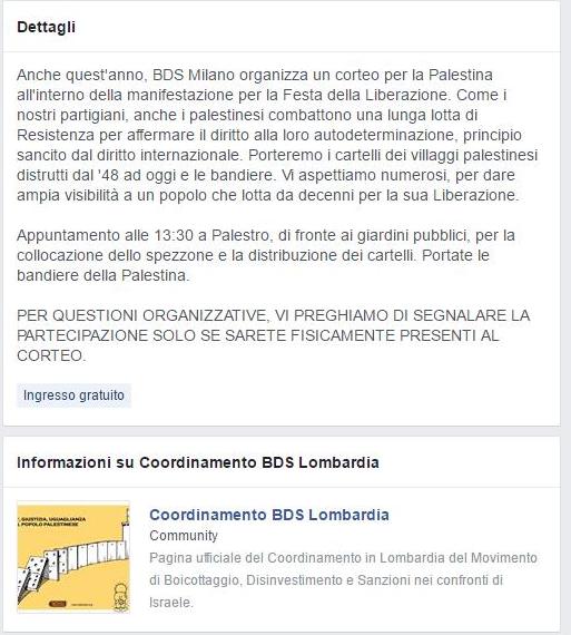 In quella che in diversa città è ormai diventata la ricorrenza in cui frange estremiste scaricano tonnellate di odio anti-israeliano e antisemita contro i simpatizzanti della Brigata Ebraica, eroi spesso dimenticati di quella gloriosa pagina di storia, iniziano gli appelli alla mobilitazione per sostenere nuove liberazioni. Stavolta dal “mostro sionista”.