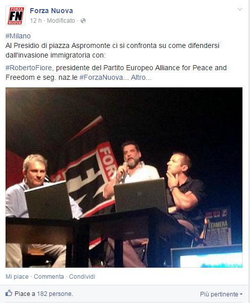 «L’ospitalità delle istituzioni dovrebbe essere impostata sul rispetto dei valori fondanti la nostra democrazia, come l’antifascismo. Da questo punto di vista l’invito di un esponente di Forza Nuova, un movimento estremista di destra, a un dibattito regionale, risulta imbarazzante e inopportuna», ha dichiarato Dario Violi, capogruppo del M5S al Consiglio regionale. «Peraltro – aggiunge Violi – un convegno con quel titolo non ha nulla a che vedere con le politiche regionali, a meno che Maroni voglia mettere un muro sul Po per fermare l’immigrazione».