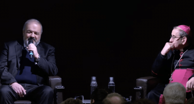 (Nell’immagine il presidente dell’Ari, rav Alfonso Arbib, e l’arcivescovo di Milano, Mario Delpini, durante un incontro sul dialogo interreligioso al Memoriale della Shoah di Milano)