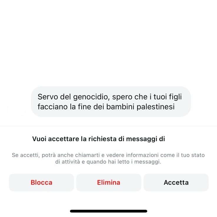 Utente invia un messagio al Deputato Carlo Calenda chiamandolo “servo del genocidio”  e augurando “che i tuoi figli [Calenda] facciano la fine dei bambini palestinesi”.