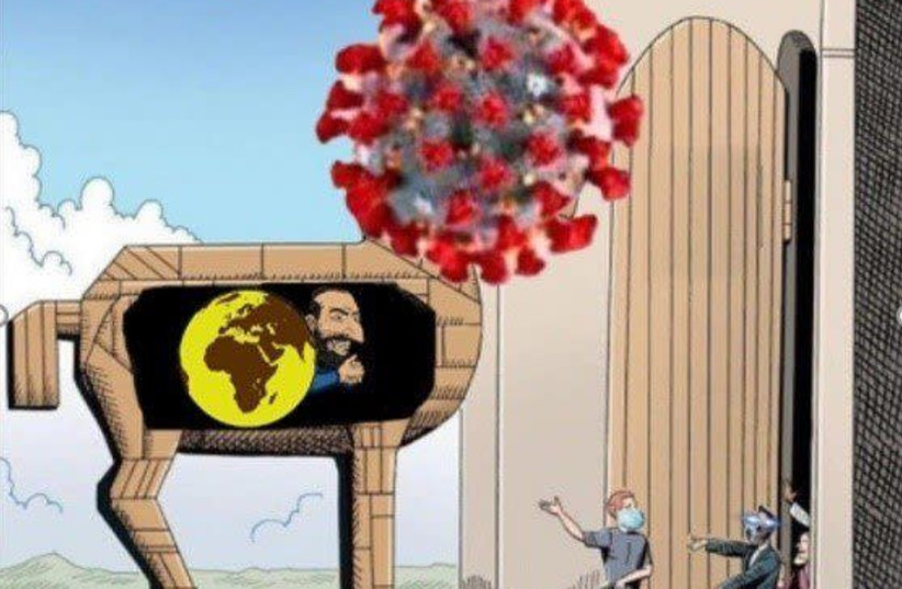 The ADL pointed to an image shared on the Telegram social network earlier this month showing a Trojan horse whose head was a coronavirus cell and was carrying inside an antisemitic caricature of a Jew alongside an image of a globe.