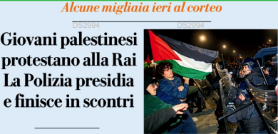 Quando hanno provato a fare pressione contro i cancelli della Rai di Bologna, in via della Fiera, è scattata la carica delle forze dell’ordine. Spintoni e manganellate da una parte e un fitto lancio d’oggetti e fumogeni dall’altra. Ieri sera ci sono stati attimi di grande tensione durante una manifestazione pro Palestina alla quale hanno preso parte tra le 2.000 e le 2.500 persone. I partecipanti si sono dati appuntamento intorno alle 18 per protestare «contro la censura dei tg nazionali che nasconde i massacri che si stanno verificando nella striscia di Gaza». Per questo i manifestanti pretendevano che durante il Tgr dell’Emilia-Romagna fosse letto integralmente un loro documento. A “trattare” con gli organizzatori del presidio sono scesi in strada il caporedattore Filippo Vendemmiati e il direttore della sede Stefano Tura. Vendemmiati ha personalmente parlato con i rappresentanti dei manifestanti sul servizio che è poi andato in onda al Tg delle 19. Gli attivisti avrebbero voluto la lettura dell’intero documento poi si è poi trovato un accordo sui passaggi più “significativi”. Ossia la «richiesta di dimissioni di Roberto Sergio», amministratore delegato della Rai, e la critica «alla linea editoriale dell’informazione schiacciata sulla narrazione israeliana che tace sui 28mila morti palestinesi». Dopo aver ottenuto le rassicurazioni dai vertici Rai dell’Emilia-Romagna la manifestazione si è spostata con un lungo corteo che ha sfilato accanto alla sede della Regione, lungo via Stalingrado, attraverso porta Mascarella e via Irnerio, per poi raggiungere Piazza XX settembre, dove il raduno si è sciolto. Inizialmente si doveva trattare di un presidio simbolico sotto la Rai, ma l’iniziativa dell’associazione dei Giovani palestinesi si è trasformata in qualcosa di più consistente. Nel giro di circa un’ora, infatti, al centinaio di militanti iniziali si sono unite tantissime altre persone. Studenti soprattutto, sia universitari che delle superiori, e poi molte famiglie, organizzazioni sindacali di base e movimenti dell’area di sinistra. Bandiere della Palestina, alcuni striscioni, tanti cartelli e soprattutto slogan. Tra le tante scritte “Stop al genocidio”. Al posto della “a” di Rai è stata dipinta la stella di David. Tanti i cori per dire che l’informazione nazionale «parla soltanto del 7 ottobre, ma mai delle migliaia di bambini innocenti assassinati nella striscia». II Cdr della Rai emiliano- romagnola, in serata ha diramato una nota nella quale afferma: «La libertà di espressione e di manifestazione è un diritto costituzionale insopprimibile, anche quando divide o dà fastidio. La violenza invece non è mai accettabile». Solidarietà all’ad della Rai arriva dal console di Israele per Toscana, Emilia-Romagna e Lombardia, Marco Carrai.