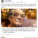 Ha lasciato uscire allo scoperto quelli che contano. Poi, Elio Lannutti, ex senatore dell’Italia dei Valori, che ha ritrovato con i CinqueStelle una candidatura per ricominciare, si è scagliato contro il miliardario in dollari George Soros. Sfiorando il senso del ridicolo, Lannutti interviene con un tweet indirizzato ad Emma Bonino. La accusa di essere una sponsor degli immigrati irregolari «finanziata dal criminale George Soros». Nulla di personale, con Soros, il cui vero nome è Gyorgy Schwartz, origini ungheresi ed ebraiche. Lannutti non lo conosce proprio, ma il suo istinto animalesco lo rende diffidente. O forse si è procurato i Protocolli dei Savi di Sion, e si è convinto che sia alle porte un complotto demo-pluto-giudaicomassonico. Su Soros «criminale», Lannutti si accoda a quello che ha già detto, con più dovizia di dettagli, Matteo Salvini: «Con noi al governo, Soros e i suoi miliardi pro-clandestini saranno messi al bando, saranno indesiderati in Italia». Di sicuro il finanziere, uno dei trenta uomini più ricchi del mondo, non si è spaventato delle sortite di Lannutti e Salvini. E nemmeno del tweet di Giorgia Meloni, anche lei convinta che l’uomo sia un complottista: «Soros impone con il denaro l’immigrazione di massa e la distruzione degli Stati nazionali per fare dell’Europa il suo parco giochi. Il nostro governo vieterà alle Ong di Soros di operare in Italia». Posizioni caricaturali che rimettono in circolo veleni, falsi novecenteschi, e antisemitismo subliminale. Lannutti, fustigatore di banche e «lobby di palazzo», non poteva non dire la sua.