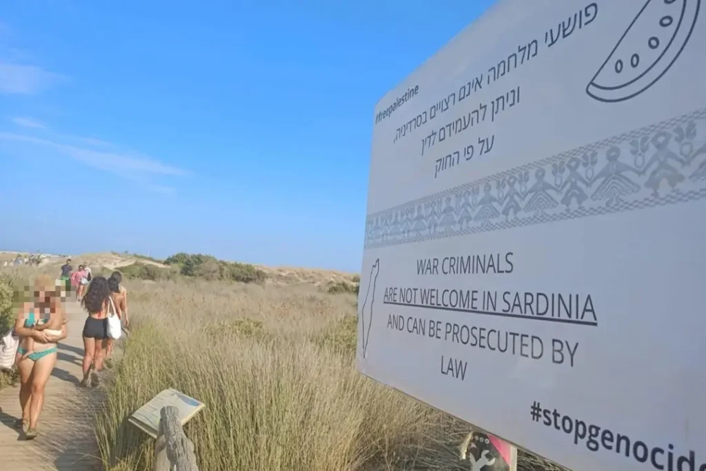 «I criminali di guerra non sono benvenuti in Sardegna e possono essere perseguiti dalla legge». Scritto in due lingue: ebraico e inglese. Sono i messaggi comparsi su alcuni manifesti affissi sopra i cartelloni dedicati ai turisti a Chia, nel comune di Domus De Maria. A corredo, oltre al disegno di una fantasia tipica dell’artigianato artistico sardo, due hashtag: “freepalestine” e “stopgenocide”.