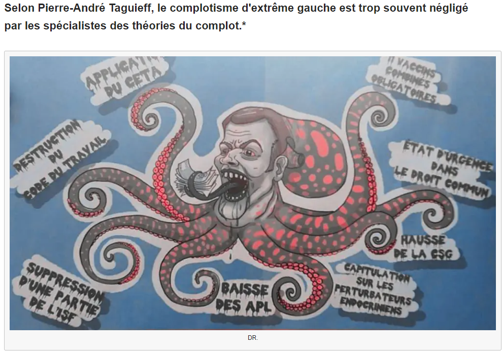 Il existe un complotisme d’extrême gauche étrangement négligé par les spécialistes des « théories du complot » : le complotisme néo-antifasciste. Les études savantes sur le complotisme ont en effet privilégié ses manifestations dans les milieux situés à l’extrême droite (contre-révolutionnaires, nationalistes xénophobes et antisémites, fascistes, nazis, néo-fascistes et néo-nazis, populistes de droite [1]), de la même manière que les travaux académiques sur l’extrémisme ou sur le populisme ont porté principalement sur les extrémismes de droite et les populismes de droite. C’est là laisser entendre que les milieux révolutionnaires (socialistes, anarchistes, communistes) auraient été allergiques aux croyances complotistes [2]. On sait pourtant, grâce à de récents travaux de psychologie sociale, que les extrémistes de gauche comme ceux de droite sont particulièrement enclins à adhérer à des thèses complotistes [3]. Ils partagent notamment une « perception manichéenne et simplifiée du monde, complétée par une vision plus négative et plus stigmatisante de leurs adversaires politiques [4] ». Ce qui caractérise les extrémistes, c’est donc leur tendance à la méfiance et au soupçon ainsi qu’à l’intolérance dogmatique et au rejet phobique des idées qui diffèrent des leurs [5]. Ils diabolisent les exogroupes idéologiques qu’ils se représentent d’une façon paranoïaque comme des incarnations du Mal [6].