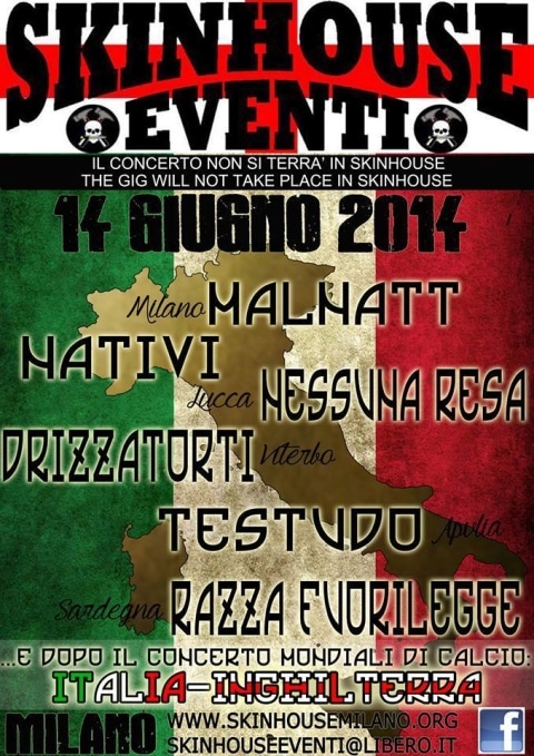 MENTRE le prime note si diffondono per il piazzale antistante la discoteca, anche il pubblico inizia a farsi vivo: ci sono famiglie intere, qualche ragazza, poche in verità, qualche camerata azzimato e moltissimi giovani uomini. Hanno il fisico curato, i capelli corti, ma solo di rado rasati, un abbigliamento spesso, ma non necessariamente, scuro, qualche maglietta nera del gruppo Lealtà e Azione e la pelle istoriata di tatuaggi fittissimi e dall’inequivocabile significato. Il più frequente, sui bicipiti che spuntano dalle magliette è quello dei due martelli in marcia, simbolo del movimento e che, nella simbologia neo nazi indicherebbero i martelli che serviranno nel prossimo futuro ad abbattere le minoranze etniche e religiose che, oggi, minano la tradizione e la supremazia della Nazione Bianca. Sarà. Eppure qui, nel sabato pomeriggio appiccicoso della zona industriale di Brugherio, di minacce, di martelli, di violenza e persino di supremazia se ne vede poca: gli Hammerskin sono chiusi nel locale che li ospita. Fuori, nel caso le cose si mettessero male, un fitto cordone di polizia in tenuta antisommossa. COSÌ, quando il concerto inizia, tutto sembra tranquillo, non fosse che per le parole, dall’esplicito sapore razzista, che si intercettano nelle canzoni. Fuori dal locale, a fare la guardia alla porta due Hammerskin di poco più di vent’anni, che sono gentili ma fermi nel trincerarsi dietro un fitto “no comment”: non rivelano nulla sulla serata, né quanti sono i partecipanti attesi, nè su quali gruppi suoneranno, né su cosa faranno dei proventi della loro serata, né sulla loro vicinanza al gruppo neonazista greco Alba Dorata. Niente. Solo su un tema si sbottonano un po’: il presidio democratico che manifesta contro di loro e che proprio non gli va giù: «Non so perché manifestino contro di noi – dice uno di loro – ormai non ci facciamo caso, succede sempre, ogni volta che andiamo in un posto, ma ogni volta non ne capisco il motivo: abbiamo preso un locale, abbiamo pagato l’affitto, abbiamo invitato i nostri amici e ci facciamo una festa dentro, fine della storia».