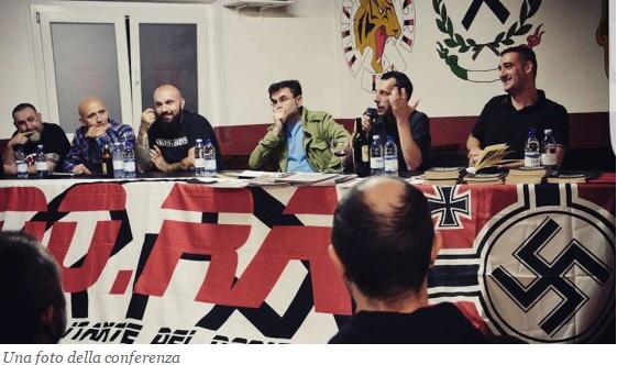 Conferenza con svastica. Non siamo nella Berlino del Terzo Reich ad un incontro del partito nazionalsocialista dei lavoratori. Siamo a Caidate, frazione di Sumirago, in provincia di Varese ed è il 20 maggio 2016, pochi giorni fa. Il dibattito – intitolato “Dalla seconda guerra mondiale ai giorni nostri: i tentacoli del potere mondialista” – è organizzato dalla Comunità militante dei Dodici Raggi (Do.Ra.), formazione di estrema destra attiva da anni nel varesotto dove predica intolleranza xenofoba, odio razzista e propaganda antisemita (tristemente celebri le feste organizzate da qualche anno per l’anniversario del compleanno di Adolf Hitler, di cui “Repubblica” ha dato conto).