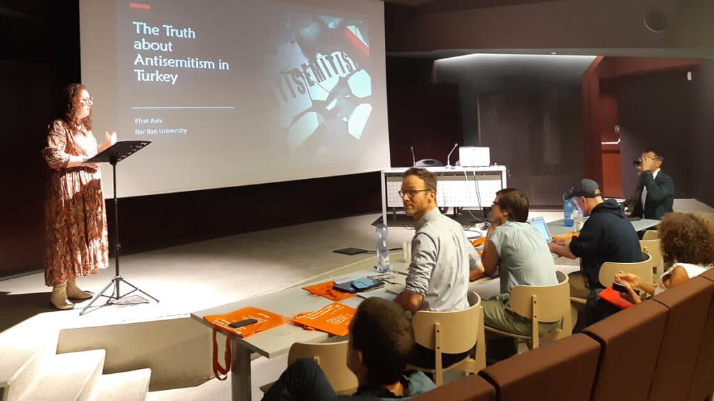 Ci sono poi paesi in cui l’antisemitismo è molto radicato nella mentalità popolare, pur attraversando fasi alterne: è il caso della Turchia, la cui storia di odio per gli ebrei e Israele è stata approfondita dalla storica israeliana Efrat Aviv, che lavora all’Università Bar Ilan. Attraverso varie slide, la Aviv ha ripercorso la storia dell’antisemitismo nella Turchia post-ottomana: dopo che negli anni ’30 ci furono persecuzioni e pogrom, nei decenni successivi al secondo dopoguerra le condizioni degli ebrei iniziarono lentamente a migliorare. Tuttavia, nuove ondate di antisemitismo sono scoppiate in particolare dopo le operazioni israeliane a Gaza negli ultimi anni. All’odio antiebraico da parte di nazionalisti e islamisti, talmente diffuso che il Mein Kampf è tra i testi più venduti nelle librerie, se ne affianca uno minoritario legato all’estrema sinistra antisionista.