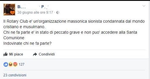 «Il Rotary Club è un’organizzazione massonica sionista», a cui seguono decine di considerazioni irridenti e cospirativiste nei confronti di medici ed opinion makers favorevoli alle vaccinazioni contro le malattie infettive, vengono linkati anche video ed articoli tratti da blog anti massoneria.