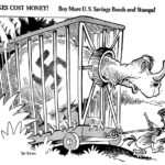 As chief editorial cartoonist at “PM” daily newspaper from 1941 through 1943, Geisel’s 400 cartoons urged Americans to go to war against the Axis. He depicted the “America First” movement as an “Isolationist Ostrich” while condemning racism and anti-Semitism.
