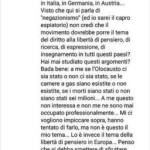 «ho da dichiararle, ai sensi di legge, che sconfesso in ogni sua singola parte e nel suo insieme la paternità dei contenuti a me riferiti e ne chiedo la immediata cancellazione web. Trattasi di estrapolazioni e manipolazioni, parziali e tendenziose, vere e proprie falsificazioni, prese da un contraddittorio, aspro, ancora in corso, situato nella pagina Facebook dell’on. Deputato Manlio Di Stefano. È totalmente ignorato il contesto in cui singole frasi, o parole, acquistano quel senso che invece perdono del tutto fuori dal contesto originario e integrale: non posso perciò indicarle un singolo punto, se questo si vuole, perché trattasi di totale falsificazione manipolativa.»