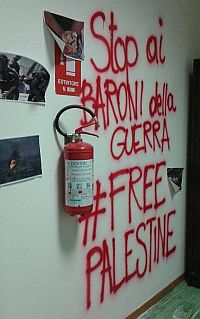 Bologna II professor Angelo Panebianco è finito nuovamente nel mirino dei centri sociali bolognesi, stavolta per un editoriale pubblicato sul Corriere della Sera sul conflitto israelo-palestinese: una decina di militanti del collettivo Hobo ha murato con cemento, pannelli e filo spinato l’ingresso del suo ufficio all’Università di Bologna, lasciando la scritta «Stop ai baroni della guerra. #Free Palestine». Il rettore dell’ateneo Ivano Dionigi parla di «attacco vigliacco, violento e delirante», il sindaco di Bologna, Virginio Merola, di «atto indegno, questi teppisti vanno isolati e condannati». Già lo scorso gennaio il politologo era stato contestato e l’ingresso del suo ufficio ricoperto di scritte. L’ultimo comunicato del collettivo Hobo recita: «Noi non riconosciamo libertà di espressione a chi calpesta e invita a cancellare dalle pagine dei giornali la libertà di milioni di persone».