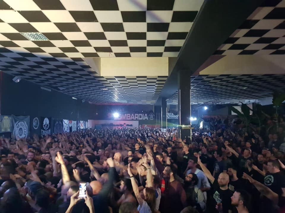 MILANO «Cento anni dopo siamo ancora tutti qui, sotto al cielo di Milano», festeggia Gianluca Iannone, 44 anni, leader del gruppo rock Zetazeroalfa, dal palco del capannone di via Toffetti, a sudest del centro. Dovrebbero essere i vent’anni del suo complesso, ma sono anche i cento dalla nascita dei Fasci mussoliniani, così gioca sull’equivoco il cantante e fondatore del centro sociale romano, poi partito neofascista, CasaPound. A sentirlo cantare sono arrivati in qualche centinaio da tutta Italia e pure da oltre confine. Un appuntamento fissato da settimane, come dimostrano cartoline e biglietti, ma definito all’ultimo minuto tramite passaparola alla moda delle feste più ambite dalla destinazione segreta. Solo che invece di un appuntamento trendy, la febbre del sabato sera ha preso i neofascisti che hanno festeggiato a braccia tese per il saluto romano fino a tarda notte. Magliette con citazioni mussoliniane rigorosamente nere, teste pelate, poche ragazze e molta birra. Il raduno in pubblico era stato vietato dal prefetto Renato Saccone e definito dal sindaco Giuseppe Sala «oltremodo oltraggioso», ma CasaPound ha tenuto lo stesso in privato l’evento nel ventennale del gruppo Zetazeroalfa e nel centenario della nascita, proprio a Milano, dei Fasci italiani di combattimento ad opera di Benito Mussolini. Questi ultimi furono co-protagonisti del cosiddetto biennio rosso 1919-1921, in cui si scontrarono con i comunisti che volevano importare in Italia la rivoluzione russa del 1917 e anche con normali cittadini e lavoratori. Allo stesso modo, il gruppo di Iannone fa «rock contro il comunismo» con lo slogan ripreso su magliette e social: «Abbiamo cento anni, ma ce ne sentiamo venti». E se i riferimenti non fossero abbastanza chiari, i cancelli del concerto sono stati aperti alle 19,19 in omaggio alla fondazione dei Fasci, prima che sul palco si susseguissero i gruppi Ultima frontiera, Fantasmi del passato, Spqr e infine i Zetazeroalfa. Dall’esperienza aggregativa di questi ultimi, con esibizioni dalla Spagna alla Finlandia, ha origine il movimento CasaPound, attorno a cui esiste «un mondo sommerso», come lo definisce Iannone, di complessi rock e rap, senza contare una casa discografica, i dibattiti e il quotidiano online Il primato nazionale, che si definisce «sovranista», ospita il blog “La ragion populista” di Diego Fusaro e ieri titolava «Draghi ha chiesto austerità e il governo si è piegato: lo conferma la Bce». Altro mezzo della galassia CasaPound per avvicinare i giovani, oltre alla presenza sui social, è Blocco studentesco, associazione presente in oltre cinquanta città italiane e presente al concerto di sabato sera con molti suoi esponenti. Alcuni di loro, assieme a un centinaio di neofascisti con tanto di vessilli della Repubblica di Salò, tra cui esponenti di Lealtà azione, alternandosi a una manifestazione antifascista, si sono incontrati all’ora di pranzo di sabato al Cimitero monumentale di Milano per leggere i nomi dei camerati caduti e depositare una rosa sulla cripta fatta costruire da Mussolini per onorarli nel 1925