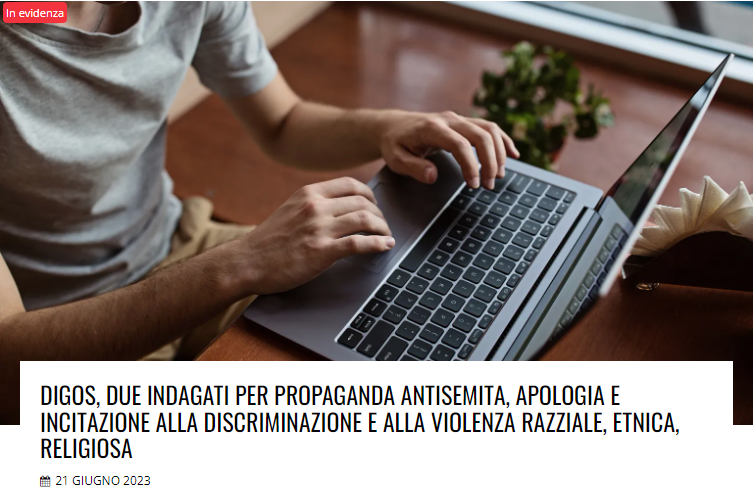 DIGOS, DUE INDAGATI PER PROPAGANDA ANTISEMITA, APOLOGIA E INCITAZIONE ALLA DISCRIMINAZIONE E ALLA VIOLENZA RAZZIALE, ETNICA, RELIGIOSA