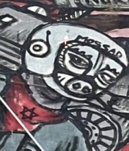 The offending mural depicts a pig wearing a helmet emblazoned, “Mossad.”