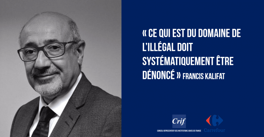 Giovedì 21 giugno, il Presidente del Crif, Francis Kalifat, ha incontrato Alexandre Bompard, amministratore delegato del Gruppo Carrefour e Laurent Vallée, segretario generale del Gruppo. Questo incontro è stato organizzato in seguito alla recente polemica a cui deve far fronte il gruppo Carrefour. In effetti, poche settimane fa, nel mese del Ramadan, i clienti di un supermercato Carrefour erano insorti di fronte alla presenza di datteri provenienti da Israele, su uno stand dedicato alla festa musulmana. I capo reparto del negozio avevano, sotto pressione, spostato i prodotti in questione, creando così un’ondata di contestazioni da parte di centinaia di consumatori, colpiti da tale decisione. La scena era stata filmata e pubblicata sui social network, assumendo un significativo effetto virale.