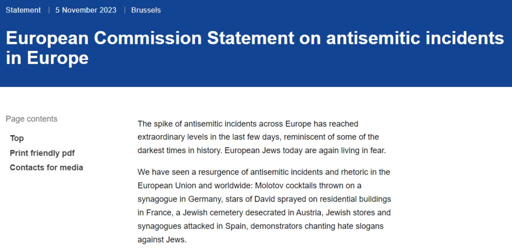 European Commission Statement on antisemitic incidents in Europe