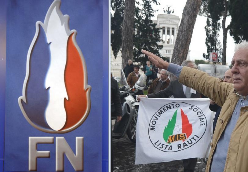 Au début des années 1970, l’extrême droite française, alors en construction, se cherchait des modèles. Le MSI, qui dépassait déjà 5.5% des voix lors des élections en Italie, en fournissait un. Avant de fournir son logo, le MSI avait déjà financé des affiches d’Ordre nouveau, l’ancêtre du FN (dont le symbole était une croix celtique). Il fera de même lors des premières campagnes du FN, fournissant cette flamme tricolore dont seules les couleurs changeaient – bien pratique pour les graphistes de l’époque. Le FN de s’affranchira du MSI qu’au mitan des années 1980, fort de ses succès électoraux.