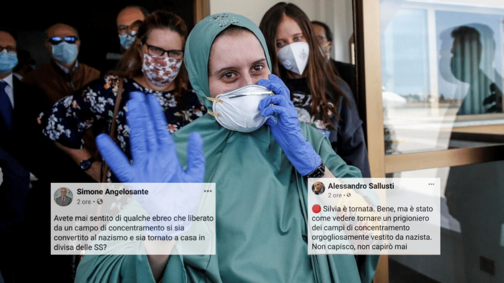 Il 10 maggio la volontaria milanese Silvia Romano, che nel 2018 era stata rapita in Kenya e consegnata al gruppo jihadista salafita somalo al-Shabaab, è tornata in Italia. La ragazza ha riabbracciato i propri cari indossando un abito integrale islamico di colore verde. Quest’ultimo particolare ha però scatenato alcune polemiche sui social, compresi i riferimenti agli ebrei detenuti nei lager nazisti.