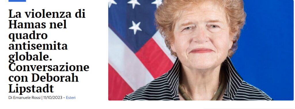 Per Lipstadt, va evidenziato che gli antisemiti utilizzeranno quanto accade secondo il proprio interesse, e l’attacco di per sé ha profonde implicazioni sia sul tema che a livello geopolitico (dove l’odio contro gli ebrei non è un elemento secondario nell’interpretazione di certe dinamiche d’ottiche). “Occorre certamente distinguere e separare le crisi geopolitiche in Medio Oriente dal discorso antisemita, perché l’antisemitismo viene prima della questione palestinese, prima dello Stato di Israele. Ma la mia speranza è che la partita geopolitica in corso in Medio Oriente si porti dietro anche un colpo contro l’antisemitismo”.