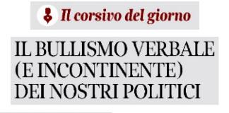 E poi ci si scandalizza del bullismo giovanile. Ma siamo seri noi adulti, una volta tanto! Con che faccia tosta ci precipitiamo a punire i ragazzi se i primi bulli verbali siamo noi, incapaci di misurare le parole, come si diceva una volta quando ci si sentiva offesi: «ehi tu, misura le parole…». Che al netto del tono minaccioso era una bella metafora, simile alla prudenza raccomandata dal genitore al figlio preadolescente: «pensa prima di parlare». II minimo sindacale che si pretende da un adulto equilibrato è che pesi le parole prima di farne un oggetto contundente. Invece, a poche settimane dagli sproloqui (vincenti) sulla razza bianca, il grillinoparlante Alessandro Di Battista ha detto che Silvio Berlusconi è il «male assoluto», alludendo non si sa con quanta consapevolezza al genocidio nazista. E qualche giorno fa lo stesso scellerato parallelismo è affiorato sulle labbra di Vincenzo De Luca, il governatore campano. Il quale ha solennemente dichiarato: «I pd sono come gli ebrei negli anni delle leggi razziali, sono braccati, umiliati e senza patria». Accusandoli per una sorta di autoesclusione che non si vede che cosa c’entri con le leggi razziali e gli ebrei, a meno che non si pensi che gli ebrei perseguitati fossero vittime di se stessi. Ma tant’è, l’importante è la sparata a effetto. Strafottendosene del contesto e delle coordinate, della memoria storica, della tragedia e delle sue vittime (vere). Last but not least, scegliendo in grande stile il giorno della Liberazione, è arrivato Berlusconi: «Davanti ai grillini la gente si sente come gli ebrei all’apparire di Hitler». Quale gente? Mah. Per correggersi c’è sempre tempo. Questa corsa a proclamarsi «ebrei» di un presunto totalitarismo, questo incontinente bullismo verbale (non giovanile ma senile), questo bullismo pseudo vittimario da quattro soldi andrebbe punito con una sospensione esemplare: proprio come viene punito il ragazzo che offende il compagno o il professore. Invece nulla: ci tocca aspettare la prossima scemenza. La becera cialtronaggine locutoria, che è anche cialtronaggine civile, è uno dei pochissimi punti comuni ai partiti. Sempre sicura dell’immunità. Potrebbero partire da quella per provare a formare un governo.