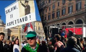 Saluti romani, omaggi al Duce, slogan neofascisti a scandire la manifestazione organizzata a Roma dalla Lega Nord insieme a Casa Pound. “Per noi non esiste eccesso di legittima difesa. Se entri in casa mia in piedi, devi sapere che puoi uscirne steso” ha affermato il leader leghista Matteo Salvini. Su Repubblica Gad Lerner osserva: “La folla è in visibilio, il comizio non fa rimpiangere quelli di Almirante nella piazza del Popolo fascista di 40 anni fa”.