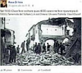 Il post su Facebook sarà rimosso solo a tarda sera, nonostante nel Municipio 5 abbia creato imbarazzo nella maggioranza di centrodestra. Rosa Di Vaia, eletta nelle liste di Forza Italia, nominata da poco più d’un mese assessore alla Cultura, venerdì scorso, inneggia al Duce. I tg rilanciano senza interruzione le immagini dei paesi distrutti dal terremoto, Amatrice rasa al suolo…e lei scrive: «Nel 1930 il Duce fece costruire quasi 4.000 case e ne riparò più di 5.000 (terremoto del Vulture), in soli 3 mesi. Un vero Patriota: Viva il Duce!». Il presidente del Municipio, Alessandro Bramati, è sgomento: «Lo apprendo da voi, non utilizzo i social. La mia storia personale mi rende lontano anni luce dal Duce. Allo stato confermo la fiducia come assessore ma chiederò ragione di questo post». Mentre dai banchi dell’opposizione parte la denuncia, Natale Carapellese del Pd annuncia: «Presenteremo un’interrogazione».