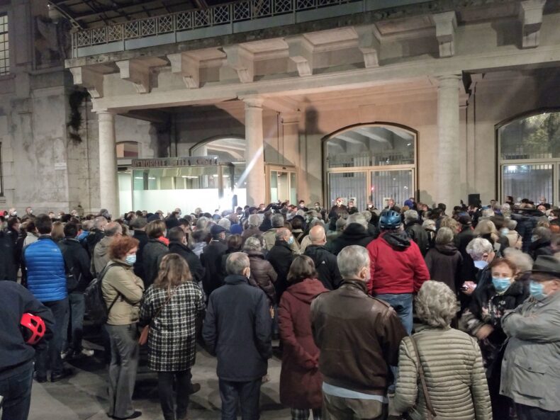 La Memoria della Shoah è patrimonio di tutti. Per questo serve uno sforzo comune per difenderla quando viene strumentalizzata, distorta, insultata. Lo hanno ribadito le centinaia di persone che hanno scelto di partecipare alla manifestazione in piazza Edmondo Safra, davanti al Memoriale della Shoah di Milano. Un presidio organizzato in ventiquattro ore, ma che ha subito trovato adesione da parte delle istituzioni e della cittadinanza. Un’occasione pubblica – promossa da Memoriale, Comunità ebraica e Sant’Egidio – per dire con forza “basta alle strumentalizzazioni della Shoah”. In particolare dopo l’ennesimo tentativo, a Novara, del movimento no green pass e no vax di farsi passare come vittima di una inesistente dittatura. Di associare le misure contro la pandemia, decise per tutelare i cittadini, alla persecuzione nazifascista che calpestava vite e diritti. “Quella gente è proprio fortunata perché ha potuto mimare la sofferenza senza viverla, non sa cosa ha davvero sofferto chi è stato prima escluso, poi discriminato, infine annientato”, le parole della senatrice a vita Liliana Segre risuonate dal palco posto per l’occasione davanti al Memoriale e lette dalla coordinatrice nazionale contro l’antisemitismo Milena Santerini. Parole accolte con un lungo e sentito applauso. Così come quelle di tutte le autorità e istituzioni venute a ribadire la necessità di lottare insieme in difesa della Memoria.