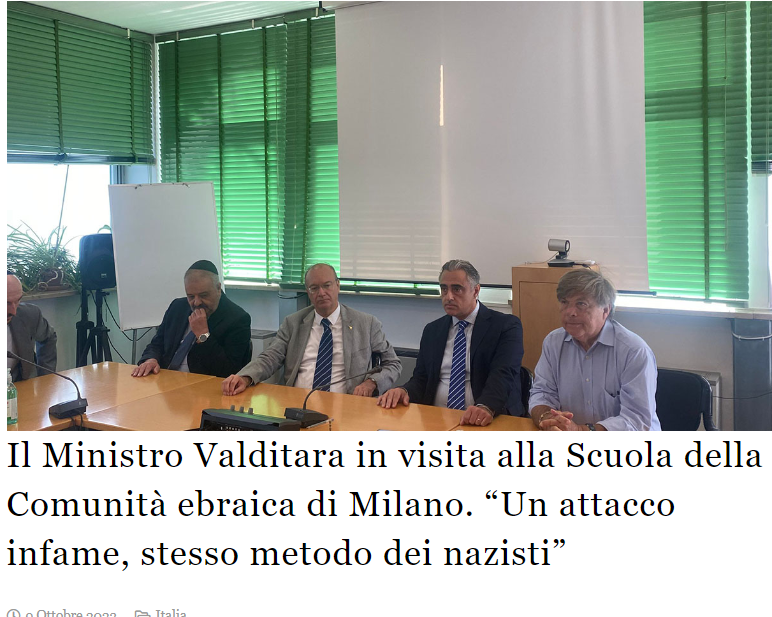 Il Ministro Valditara in visita alla Scuola della Comunità ebraica di Milano. “Un attacco infame, stesso metodo dei nazisti”