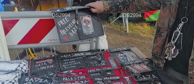 Le scritte sono diverse e si va dalla classica e ormai scontata “Free Gaza” fino all’intramontabile “Resistenza Sempre” passando da “Stop al genocidio”. C’è anche qualche frase in arabo. L’uomo, giacca militare tedesca ricoperta da bandiere palestinesi, ci mostra poi altri capi davvero singolari come un porta tabacco da 25 euro In piazza Leonardo il mercatino abusivo dei pro-Pal Presto ci saranno i vessilli da appendere all’albero di Natale.