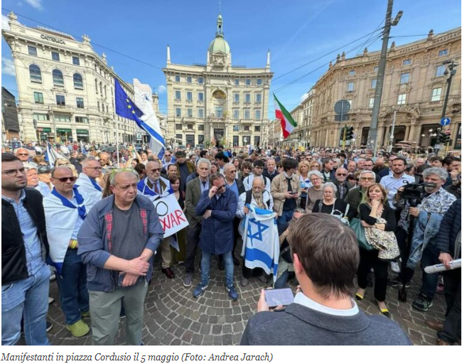 In questa atmosfera, circa 200 persone si sono radunate domenica 5 maggio in Piazza Cordusio per il presidio contro l’antisemitismo organizzato da Daniele Nahum, consigliere comunale e già vicepresidente della Comunità Ebraica di Milano. Sul posto, oltre ad esponenti dell’ebraismo milanese e ai manifestanti iraniani, ucraini e georgiani, sono intervenuti i capigruppo di tutte le principali forze politiche milanesi, con la sola eccezione del Movimento Cinque Stelle.