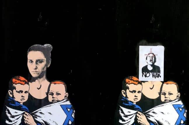 However, a piece of paper with an image of a boy in a gunsight and the words “no war” was placed over Shiri’s face in what French philosopher and writer Bernard-Henri Lévy termed a “vile gesture against the memory of the victims”.
