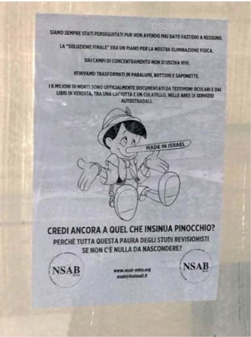 Un anno e quattro mesi a due membri del Movimento nazionalsocialista I volantini sull’Olocausto e la foto di Pinocchio: «Ci credete ancora?» Il giudice: popolo ebraico denigrato con tesi fantasiose e inattendibili
