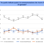 A confermarsi è una tendenza già registrata nel 2020 e 2021, con una crescita considerevole del gruppo di chi ritiene innanzitutto “giusto” celebrare il Giorno della Memoria. Il segno, si spiega nel rapporto, “di uno scarto semantico rispetto al passato e di una nuova attualizzazione dei contenuti legati al 27 gennaio”.