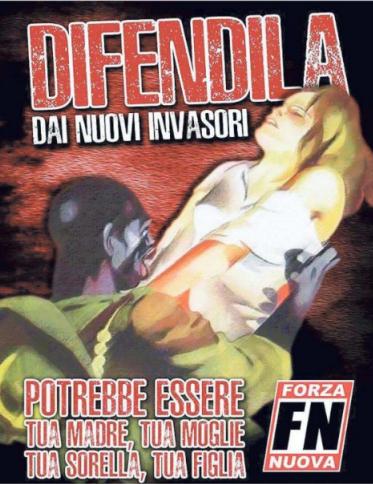 Un uomo nero che aggredisce una donna bianca, intento a strapparle la camicetta. E la scritta “Difendila dai nuovi invasori. Potrebbe essere tua madre, tua moglie, tua sorella, tua figlia». È il manifesto della nuova campagna shock anti-immigrati di Forza Nuova. Il cartello — postato sulla pagina Fb del partito neofascista, diffuso in Rete e che forse verrà affisso nelle città — è perfettamente in linea con le posizioni razziste e xenofobe portate avanti dalla formazione di Roberto Fiore (fino al virulento attacco contro lo ius soli). Ma con un particolare in più: ripropone — riadattandolo ai giorni nostri, tra emergenza sbarchi, aggressioni e altri episodi di cronaca — un manifesto con cui la Repubblica sociale italiana, nel 1944, ai tempi dell’avanzata degli angloamericani contro fascisti e nazisti, poi culminata con la Liberazione, propagandava la figura del “negro” invasore quale “violentatore e massacratore di inermi e nemico della civiltà europea”. L’immagine a cui si è ispirata Forza Nuova è opera di Gino Boccasile, artista grafico propagandista celebre per i suoi manifesti icone del regime fascista e dell’ alleanza coi tedeschi ( lo stesso Boccasile era stato tra i firmatari del Manifesto della razza in appoggio all’introduzione delle leggi razziali ).L’uomo nero che aggredisce la donna bianca, nell’illustrazione “bellica” di Boccasile, altro non è che un soldato alleato: forse un goumier francese (le truppe coloniali provenienti dal Marocco). Il 1944 è l’anno dello sbarco ad Anzio e Nettuno: la Seconda guerra mondiale è in corso e, nella vulgata fascista, i soldati che stanno occupando il territorio italiano sono responsabili di stupri e violenze. Su questa paura fa leva il manifesto di Boccasile ( autore anche di famose pubblicità dall’amaro Ramazzotti al Formaggino Mio ), che infatti viene diffuso nelle aree della Rsi non ancora “prese” dagli angloamericani. Settantatré anni dopo quell’immagine viene adottata in chiave anti-immigrati da Forza Nuova, e cioè un partito che già due sentenze della Cassazione hanno ritenuto legittimo equiparare a una formazione “nazifascista”. A spiegare il delirante parallelismo tra la Seconda guerra mondiale e i giorni d’oggi, ovvero tra gli invasori “alleati” e i “nuovi invasori”, che sarebbero i migranti in arrivo in Italia, sono gli stessi comunicatori forzanovisti. A corredo del manifesto postato il 29 agosto alle 21.04 (8.708 like e 520 commenti), si legge: «Gli stupri, si sa, sono il barbaro e infame corollario di ogni guerra di conquista. Le violenze contro le donne dell’epoca del manifesto a cui ci siamo ispirati furono contestualizzate all’interno della sconfitta che chiamarono “liberazione”; quelle di questi anni e di questi giorni le occultano spudoratamente, tacendo il fatto che sono attuate da nuovi invasori a cui paghiamo vitto, alloggio, bollette, schede telefoniche, cellulari e sigarette. I nuovi barbari sono peggiori di quelli del ’43-’45, oggi come allora fiancheggiati dai traditori della Patria». Il messaggio è dunque questo: che i “nuovi invasori”, gli immigrati, anche loro nemici della civiltà europea, stanno occupando l’Italia, e intanto violentano le donne. Da qui il monito di Forza Nuova ai cittadini: «Difendiamole». «Questo manifesto è una palese istigazione all’odio razziale — commentano dall’Osservatorio sulle nuove destre — Di fronte a una notizia di reato cosi evidente, c’è da aspettarsi un intervento immediato da parte della magistratura e delle istituzioni democratiche». L’obiettivo del partito di Fiore è chiaro: soffiare sul fuoco, cavalcare la paura strumentalizzando alcuni fatti di cronaca che, nei giorni scorsi, hanno visto come protagonisti — sia come autori sia come vittime — degli immigrati. A partire dalla vicenda dello stupro di Rimini ai danni di una turista polacca: i responsabili non sono ancora stati individuati ma la denuncia di una coppia di Legnano — aggredita il 12 agosto nella stessa zona da un gruppo di nordafricani — è bastata a accendere la rabbia razzista sul web. L’ultimo nemico, in ordine di tempo, è stato don Massimo Biancalani, il prete di Pistoia contestato in chiesa per aver portato una giornata in piscina alcuni profughi africani. Anche loro “nuovi invasori”.